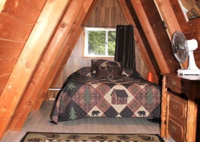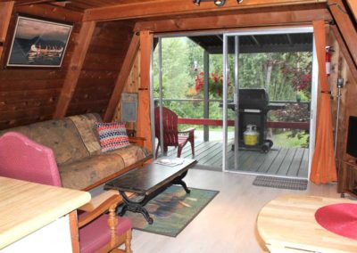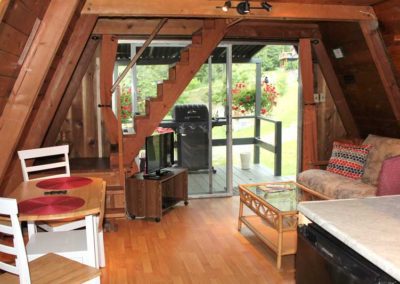 This cozy chalet has an open concept living room/kitchen with full bathroom.